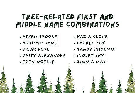 Introduce a tree name into a first and middle name combination. If you have your heart set on a tree name that feels too obscure, choose it as a middle name instead. According to Collins, you can “go with a family name for the first name, and then choose a unique name to pair it with as a middle name to offer the best of both worlds.” For example: Marta Primrose Victoria Aspen Jennifer Sequoia Emily Wisteria Sophia Blossom