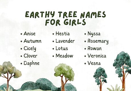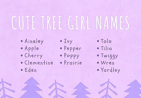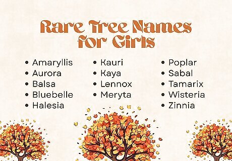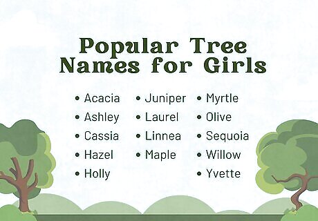 Find tree names that are already beloved by many. These names are closely linked with well-known types of trees. Some include Acacia, Holly, and Juniper. Others, like Hazel, are associated with the hazelnut tree, while Sequoia is the name for a type of large redwood tree. Acacia - Means “thorny tree” in Greek. Ashley - Means “ash tree meadow” in Old English. Cassia - Name of the tree that grows cinnamon. Hazel - Derives from the Old English “haesel.” Holly - Known for shiny green leaves and red berries. Juniper - A tree with aromatic juniper berries. Laurel - Another word for a bay leaf tree. Linnea - Name given to a lime tree. Maple - Taken from Old English “mapel.” Myrtle - A tree associated with peace and prosperity. Olive - A symbolic tree linked to peace and victory. Sequoia - Another name for a type of redwood tree. Willow - Derived from the Old English “welig.” Yvette - Means “yew tree” in French. Meet the wikiHow Experts Tara Collins is a baby name expert who established The Name Nest in 2018 after her personal journey of selecting her children’s names. Sonya Prior is a baby naming expert who shares name content on social media to over 30k followers across Instagram and TikTok.