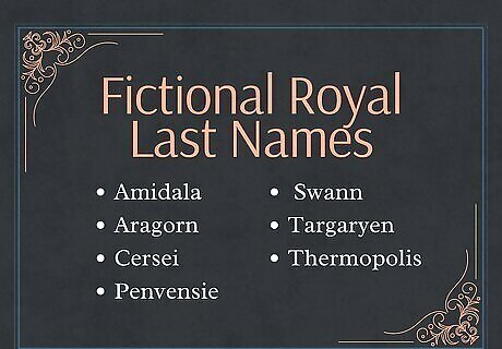 These royal last names come from your favorite movies, shows, and books. Some of the best royal character surnames are inspired by real-life royals, but they’re not factual. Take a look at the list below for some fantastical inspiration: Amidala (from Star Wars) Aragorn (from The Lord of the Rings) Cersei (from Game of Thrones) Penvensie (from The Chronicles of Narnia) Swann (from Pirates of the Caribbean) Targaryen (from Game of Thrones) Thermopolis (from The Princess Diaries)