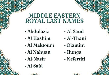 These royal last names hail from the Middle East. Middle Eastern royals have dignified surnames that are simple yet elegant. The last names below are from of the most significant leaders of the Middle East: Abdulaziz (Arabic for “servant of the Almighty”) Al Hashim (Islamic for “from the clan of Hashim”) Al Maktoum (Arabic for “the one who is guided”) Al Nahyan (Arabic for “guidance” or “wisdom”) Al-Nasir (Arabic for “the helper”) Al Said (Arabic for “the happy”) Al Saud (Arabic for “the fortunate”) Al-Thani (Arabic for “of Thani”) Dlamini (African for “descendant of Dlamini”) Ilunga (African for “tolerant”) Nefertiti (Egyptian for “the beautiful one”)Fun fact: in Arabic, names start with “Al” because “Al” is a definite article that means “the.” Arabic proper nouns often start with “Al” to signify importance or class.