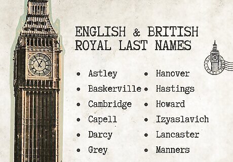 These royal last names are deeply rooted in British history. England has the most well-known monarchical rule. These surnames are historical and represent some of the finest (and controversial) leaders to date: Astley (Old English for “east”) Baskerville (Anglo-Norman French for “copse” or “thicket”) Cambridge (English for “bridge on the River Cam”) Capell (English for “chappell”) Courtenay (French for “from the domain of Curtius”) Cromwell (English for “winding stream”) Darcy (Irish for “dark-haired”) Grey (English for “grey complexion”) Hanover (German for “bank” or “shore”) Hastings (English for “from Hastings in Sussex”) Howard (Norman-French for “bold heart”) Izyaslavich (Slavic for “son of Izyaslav”) Lancaster (English for “fort on the Lune river”) Manners (Norman for “to remain” or “reside”) Markle (English for “boundary woodland clearing”) Middleton (English for “from the middle town”) Neville (Norman-French for “new town”) Percy (Norman-French for “from Percy”) Plantagenet (French for “sprig of broom”) Russell (French for “little red” or “red-haired”) Seymour (English for “of Saint-Maur”) Spencer (English for “dispenser of provisions”) Stanley (Old English for “stone clearing”) Talbot (Anglo-Norman for “valley bold”) Tudor (Welsh for “ruler of the people”) Windsor (English for “riverbank with a witch”) Wettin (German for “wood”) York (English for “yew-tree place”)