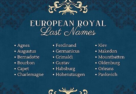 These royal last names come from the British Isles. Separated from Europe by sea, the British Isles have their own royal families. The names below are some of the most historical, well-known, and powerful royal European surnames: Agnes (Greek for “pure” or “chaste”) Augustus (Latin for “majestic”) Bernadotte (French for “of Bearn”) Bonaparte (French for “good part”) Bourbon (French for “from Bourbon”) Capet (French for “chief”) Castile (Latin for “castle”) Charlemagne (French for “Charles the Great”) Conrad (German for “brave counsel”) Ferdinand (German for “daring journey”) Germanicus (Roman for “the conqueror of Germans”) Glucksburg (German for “luck” or “castle of happiness”) Grimaldi (German for “mask” or “power”) Guillaume (French for “protector”) Gustav (Swedish for “royal staff”) Habsburg (German for “Hawk’s Castle”) Herbert (German for “bright army”) Hohenstaugen (German for “high chalice”) Kiev (Ukrainian for “stik” or “pole”) Makedon (Greek for “tall” or “slender”) Medici (Italian for “doctors”) Mountbatten (German for “from Battenberg”) Oldenburg (German for “old fortress”) Orleans (French for “from Orleans”) Pavlovich (Slavic for “son of Paul”) Romanov (Russian for “descendant of Roman”) Savoy (French for “land of fir trees”) Valois (French for “valley”)