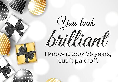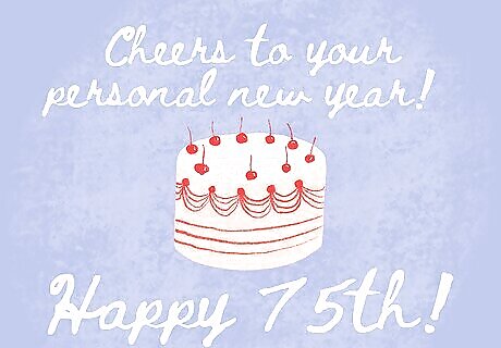 Celebrate their milestone diamond jubilee birthday. Turning 75 is a special time in someone’s life, which is why many people refer to it as a diamond jubilee. It’s a celebration of something that’s as strong, precious, and beautiful as a diamond. Include a heartfelt sentiment or inspirational quote to show them you recognise their special milestone. Stay upbeat and positive, and don’t forget to wish them well for the future!
