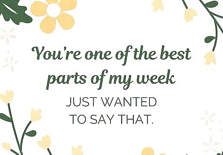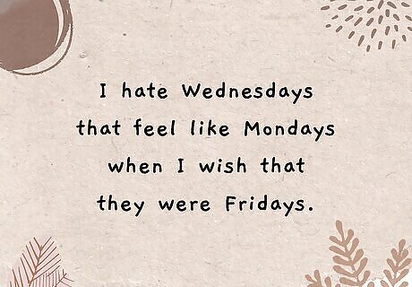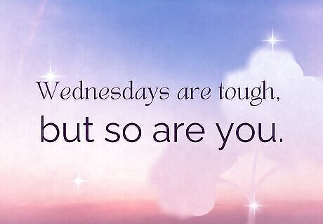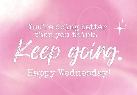Share Wednesday quotes online, in person, or with handwritten notes. No matter who you’re spreading Wednesday cheer with, there are plenty of ways to make their day brighter with a positive quote. Here are some easy and meaningful ideas: Send a good morning text with a Wednesday quote to start their day on the right foot. Share a post or image on social media with a Wednesday quote to motivate your followers. Leave a short note for a friend, coworker, or family member in a place they’ll find it, like on their desk or in their backpack. Start meetings with a quote to wish your colleagues the best this week. Wish someone a happy Wednesday in person to strike up a cheery conversation and make their day!