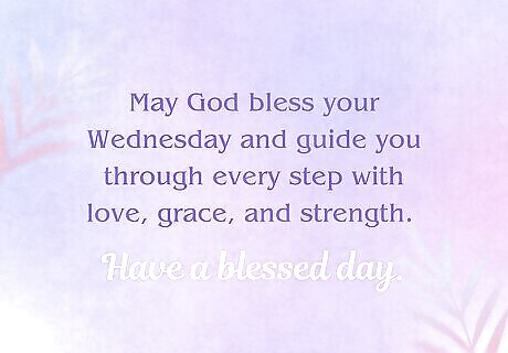 Share a spiritual message or prayer to wish someone a blessed Wednesday. If you’re religious, share a short blessing or prayer to help your loved ones make it through the end of the week. Wish them lots of peace, health, happiness, and inspiration, and remind them that God is here to guide them through the ups and downs of the week. “Happy Wednesday! See how beautifully God has added one more day to your life. Not because you need it, but because someone else might need you.” “Wishing you a happy and blessed Wednesday. May today be filled with smiles, laughter, and small moments of joy. Have a fabulous Wednesday.” “May happiness flow into your life like a gentle breeze this Wednesday, leaving behind nothing but positive vibes. Have a pleasant and happy day.” “Wishing you a peaceful Wednesday filled with comfort and joy. May your loved ones be close, and may your heart be light today. God bless your happy Wednesday.” “Happy Wednesday! May God bless your Wednesday with smiles, laughter, love, kindness, and peace. Have a fantastic day.” “Wishing you a blessed Wednesday, filled with God’s love, wisdom, and joy. Stay happy always, and may God bless you.” “Happy Wednesday! Here’s to a day that brings you peace, happiness, and a sense of gratitude for all the blessings in your life.” “Happy hump day! May today be the best day yet, filled with new adventures, bright smiles, and happy moments. Have a wonderful Wednesday.” “Happy blessed Wednesday to all my family and friends! May today bring you all the joy, love, peace, and blessings your heart possibly can hold.” “May today offer new opportunities and chances to feel blessed for all the beauty around you. Have a lovely day.” “May God bless your Wednesday and guide you through every step with love, grace, and strength. Have a blessed day.” “I pray that today brings you peace and clarity, and that God’s love fills your heart with hope. May God bless you and grant you a happy, blessed Wednesday.” “May your heart be open to the blessings God has planned for you today. Let Him lead you on this beautiful Wednesday.” “I pray that today you will feel God’s love and kindness surround you, guiding you toward peace and happiness. Have a blessed Wednesday.” “This Wednesday, may you be blessed with the strength to overcome challenges and the peace to know that God is always with you.”