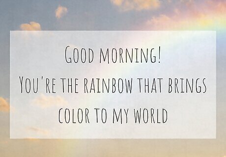 Sending a poetic or literary quote to your significant other is an incredibly romantic gesture—and who wouldn’t want to wake up to something like that! Choose a “good morning quote” that resonates with you and the feelings you have for your partner. Here are some examples to start with: “Good morning, good morning, love. It's my favorite love song. I waited all night long for morning. Good morning, love.” – John Legend “I know I am in love with you because my reality is finally better than my dreams.” – Dr. Seuss “Morning without you is a dwindled dawn.” – Emily Dickinson “Let me wake up next to you, have coffee in the morning, and wander through the city with your hand in mine, and I'll be happy for the rest of my little life.” – Charlotte Eriksson “You are all of my today and all of my tomorrows.” – Leo Christopher “Please never forget that the sun rises and sets with your smile. At least to me it does.” – Taylor Jenkins Reid “Just one look at you and I know it's gonna be a lovely day.” – Billy Withers “I have been loving you a little more every minute since this morning.” – Victor Hugo “When you arise in the morning. think of what a privilege it is to be alive, to think, to enjoy, to love…” – Marcus Aurelius “I want morning and noon and nightfall with you. I want your tears, your smiles, your kisses...the smell of your hair, the taste of your skin, the touch of your breath on my face.” – Lisa Kleypas "breathtaking, adj. Those mornings when we kiss and surrender for an hour before we say a single word.” – David Levithan “Love has no culture, boundaries, race, or religion. It is pure and beautiful like early morning sunrise falling in a lake.” – Santosh Kalwar “I want to be there when your eyes flutter open in the morning, and you see me, and you smile. Surely this would be paradise enough? So I do declare myself to you now, with pen set to paper. I declare it again: I love you.” – Neil Gaiman “‘I want to wake up with you every morning and fall asleep beside you each night,’ Patch told me gravely. ‘I want to take care of you, cherish you, and love you in a way no other man ever could. I want to spoil you — every kiss, every touch, every thought, they all belong to you. I’ll make you happy. Every day, I’ll make you happy.’” – Becca Fitzpatrick “I want to see your face in the morning, and then at night, and a hundred times in between. I want to grow old with you, I want to laugh with you, and I want to sigh to my friends about how managing you are, all the while secretly knowing I am the luckiest man in town.” – Julia Quinn “Someone who never has to pretend, and who I never have to pretend around. Someone who's smart, but knows how to laugh at himself. Someone who would listen to a symphony and start to cry, because he understands music can be too big for words. Someone who knows me better than I know myself. Someone I want to talk to first thing in the morning and last thing at night. Someone I feel like I've known my whole life, even if I haven't.” – Jodi Picoult “I want to try with someone who loves me enough to try with me. I want to grow old looking at the same face every morning. I want to grow old looking at the same face every night at the dinner table. I want to be one of those old couples you see still holding hands and laughing after fifty years of marriage. That's what I want. I want to be someone's forever.” – Rachel Gibson “I want to…take pictures of you when you're sleeping and get up to fetch you coffee and bagels and Danish and go to Florent and drink coffee at midnight and have you steal my cigarettes and never be able to find a match and tell you about the tv programme I saw the night before and take you to the eye hospital and not laugh at your jokes and want you in the morning but let you sleep for a while and kiss your back and stroke your skin and tell you how much I love your hair your eyes your lips your neck…” – Sarah Kane Meet the wikiHow Experts John Keegan is a dating and relationships coach with over 15 years of experience in helping people find and maintain romantic relationships. Eddy Baller is a dating coach who specializes in confidence-building, advanced social and communication skills, and building meaningful relationships. Zach Pontrello is an embodied leadership and relationship coach with expertise in helping people build better relationships with themselves and their partners. Connell Barrett is a relationship expert with over five years of experience as an international coach who helps men connect with women by unlocking their best, true, most confident selves.