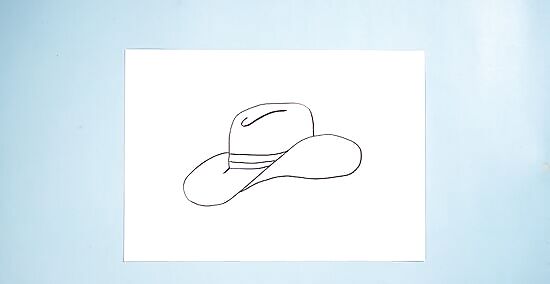 Trace another line along the brim and detail the band. These touches make your cowboy hat look a little more realistic by adding dimension. Start by tracing a line right below the curved “S”-shaped line you drew first, stopping before you circle around the loop. Next, sketch short vertical lines along the hat band to add texture to it.