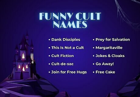 Choose a silly cult name if you’re just goofing around. Whether you’re playing D&D, a fun video game like Cult of the Lamb, or starting a pretend cult with your friends, choosing a funny name can show that the cult shouldn’t be taken seriously. Consider one of the following if your cult isn’t an actual threat: Dank Disciples This Is Not a Cult The Cult of the Underwhelming The Ministry of Pointless Information The Assembly of the Unread Emails The Grand Union of the Very Confused Cult Fiction Cult-de-sac Join for Free Hugs Disciples of the Saltless Fry Prey for Salvation Margaritaville Jokes & Cloaks The Roaring Hyenas Go Away! Free Cake Global Nation of Noobs The Mighty Vegetarians Bacon Lovers The Brave Followers of Mr. Giggles