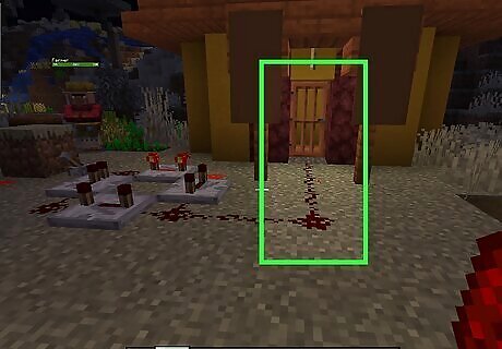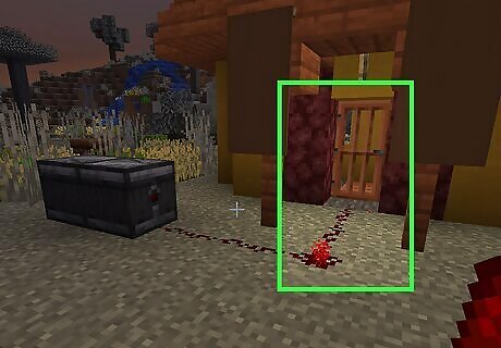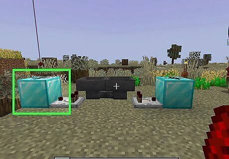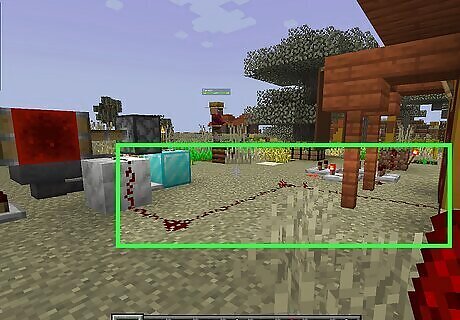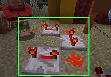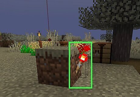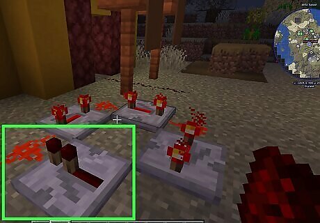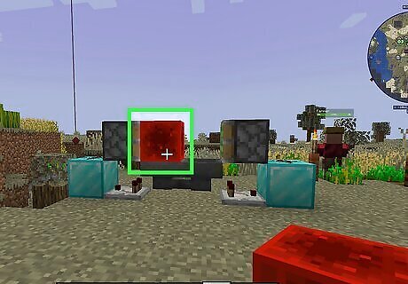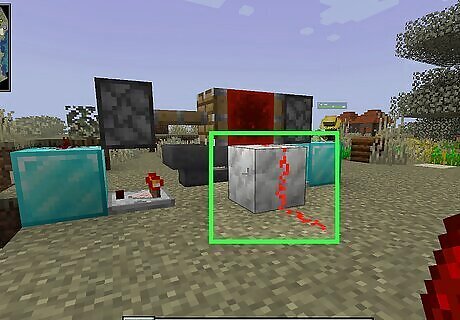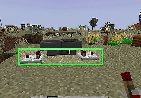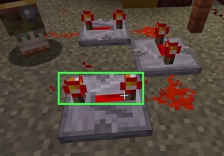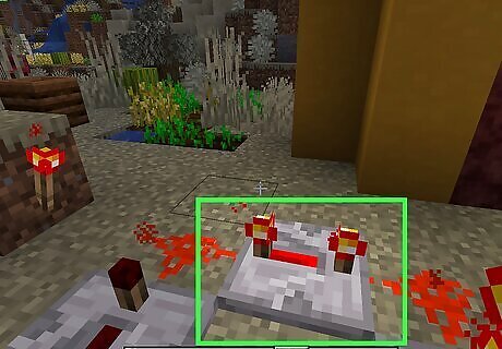 Place a block with a redstone torch. You can use any solid block you want. Place it on the ground, and then place a redstone torch on the side of the block. You can craft a redstone torch from one stick and one redstone dust using a crafting table.