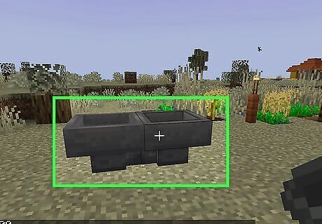 Place a redstone comparator on the end of each hopper. Place the comparator on the end of each hopper so that the two redstone torches are right up against the hopper. This will detect when the hopper is empty and produce an output signal. Redstone comparators can be crafted from 3 stone blocks, 3 redstone torches, and a Nether quartz using a crafting table. The easiest way to place the redstone comparators is to stand on top of the hopper and place the comparator on the ground next to the hopper.