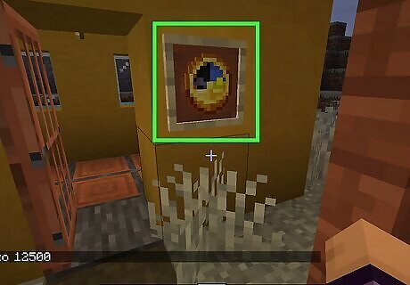 Frame a clock. You can also use a clock as a decoration. To hang it on a wall, it will need to be mounted in a frame. Equip the frame and right-click (or left trigger button) to place the frame on a wall. Then equip a clock and right-click (or left trigger button) the frame to place the clock inside the frame. An empty frame can be crafted from 8 sticks and one leather hide using a crafting table. Try this. Place an observer placing up towards the sky with a bell hanging from the bottom. Place a bell on the bottom of the observer. Then places a framed clock on the front of the observer. Align the side with trap doors, and you have a grandfather clock that chimes.