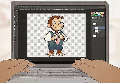 Remove the background of the Curious George photo. This can be done using many third-party tools, but for this tutorial, we'll use a free online tool called Adobe Express. Do the following: Go to adobe.com/express/feature/image/remove-background in any browser. Select Upload your photo and select the Curious George photo. Wait for the editor to remove the background. Select Download to save the edited photo to your device.