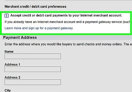 Click Show next to "Payment from buyers". It's in the seller preferences section. The seller preferences section isn't available until after you list your first item and have created a Seller Account.