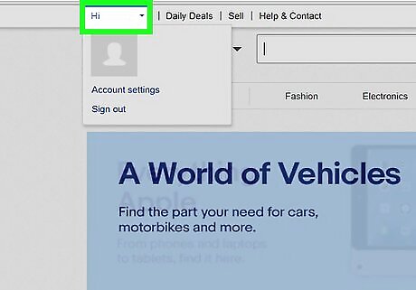 Go to eBay in a web browser. You can use any web browser on your Windows or Mac computer. If you aren't signed in automatically, click "Sign in" in the top-left corner of the page and log into your eBay account, or click "Register" to create a new account.