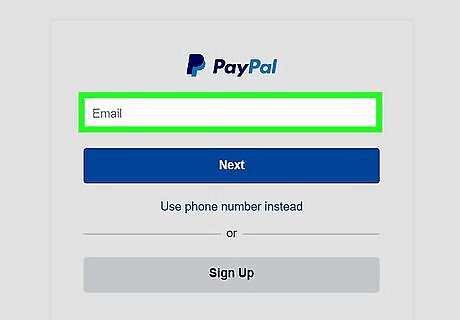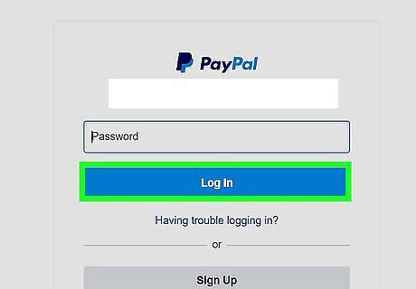 Log into your PayPal account. After you are redirected to the PayPal website, type the email address and password associated with your PayPal account and click "Log In." If you don't have a PayPal account, click "Sign up" on the left side of the page and follow the prompts. Read How to Set Up a PayPal Account for more detailed information.