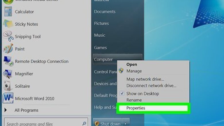 Click the Start button. Right-click on Computer and select Properties. This will open the System Properties window. You can also press ⊞ Win+Pause.