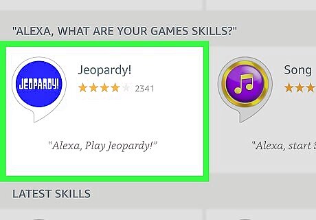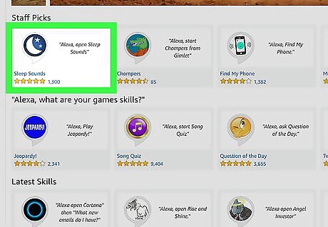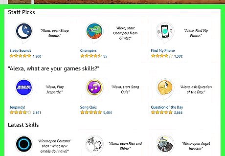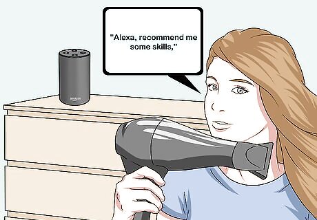 Ask Alexa to recommend skills. You can say, "Alexa, recommend me some skills," to get some ideas of popular skills. You can even ask Alexa for recommendations on skills from a specific category in the skill store, like games, news, smart home, etc. For example, if you wanted Alexa to recommend some popular game skills, you would say "Alexa, recommend me some game skills."