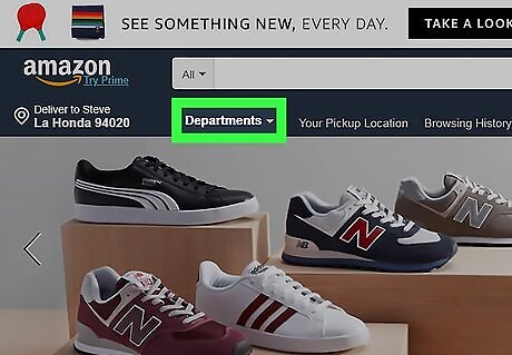 Hover the mouse over Departments ⏷. It's near the top-left corner of the page just under the Amazon logo. This will open a drop-down menu with additional options.