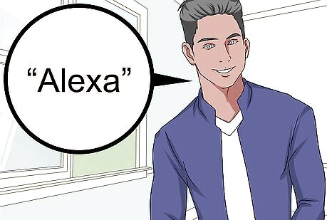Say "Alexa". Say the wake command to wake Alexa and she will begin listening for your next command. The default wake command is "Alexa," but if you've changed it to "Echo," "Amazon," or some other command, then use the wake command you previously set.
