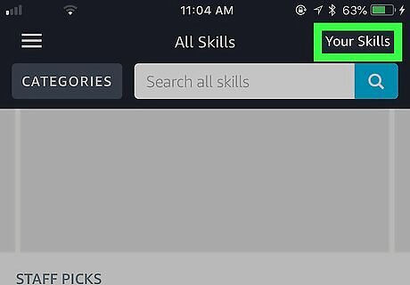 Manage your Alexa skills. Click Your Skills to manage all of the skills that are currently installed. It's near the middle of the page underneath the blue banner. You can disable skills or alter any available settings.
