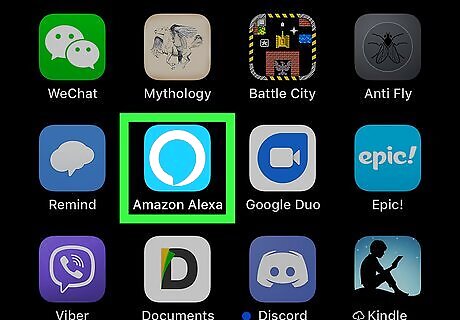 Open the Alexa App. It's the light-blue app with the white outline of a speech bubble.