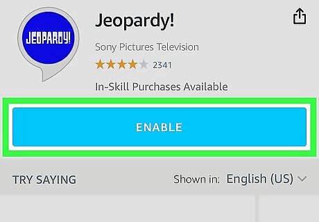 Click Enable. It's the yellow button on the right side of the page.This enables the skill on all of your Alexa devices.