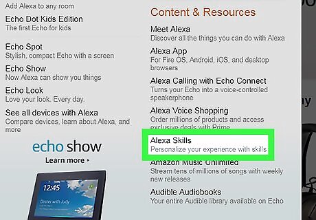 Click Alexa Skills. It's in the far-right column of the drop-down menu under the "Content & Resources" heading.