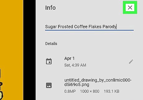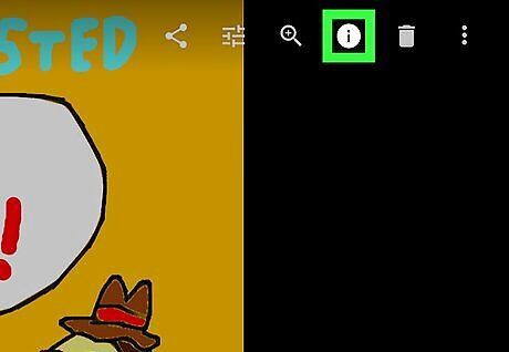 Click the white “i” in a circle. It’s at the top-right corner of the photo or video. This slides out the “Info” sidebar. If you don’t see this icon, hover your mouse over the preview to make it appear.
