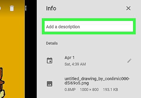 Click Add a description. It’s the first blank at the top of the “Info” sidebar.