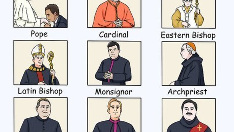Identify the clergyman's hierarchical status or post. Below are a few identifying markers for various individuals within the Catholic hierarchy. It is important to note that these are more guidelines than rules; a Pastor may be Byzantine but wear a Roman cassock, for example: The Pope is easy to distinguish by the fact that his everyday cassock (robe worn by clergy when not doing anything liturgically) is white. He is usually the only one who has a white cassock (there is a tiny chance that an Eastern clergy member might wear a white cassock, since colors are not regulated closely in all Eastern Churches, and some Latin Priests are permitted to wear white cassocks in tropical countries). A Cardinal has a red cassock (although it should be noted that at least one regular Eastern Bishop has one). A Metropolitan or Eastern Bishop may wear a loose cassock, a riasa (a cloak-type garment worn over the cassock, with long, flowing sleeves), a tall black hat, possibly with a veil; in some Slavic traditions, a Metropolitan's hat will be white), and a Panagia, which is a medal with an icon of the Theotokos on it. A Latin Bishop may be recognized by the red lining, piping and buttons on his black cassock, the red sash around his waist, and that red skullcap (zucchetto). He also wears a pectoral Cross. A Monsignor is known by the red ng, piping and buttons on his black cassock. But he does not wear a pectoral Cross or a red skullcap. This title of honour is generally not given any more in the East. An Archpriest is maybe the Eastern Catholic equivalent of the rank of Monsignor. If he chooses to wear a hat, it may be purple or red. In a liturgical setting, he can also wear the shields, like a Bishop. Other than that, he dresses like an Eastern Rite Priest. An Eastern rite Priest dresses the same as a Bishop, with some exceptions. Instead of a Panagia, he wears a pectoral Cross. Instead of a klobuk, he may wear a black kamilavka. In some Churches, the kamilavka is a reward, while in others it is an option for any Priest. A Latin Priest wears a tighter fitting cassock. He also wears the white collar. An Eastern Deacon dresses the same as an Eastern Rite Priest, minus the pectoral Cross.