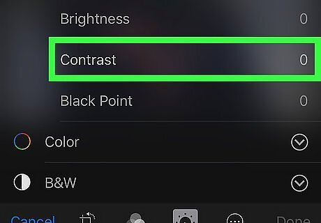 Tap Light or Color. You can adjust the contrast for lighting and colors separately. Both options have their own Contrast slider.