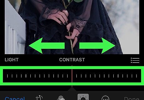 Use the slider to adjust the contrast. Move the slider left to decrease the contrast, and right to increase it. You’ll see the effects of moving the slider on the preview of your photo.