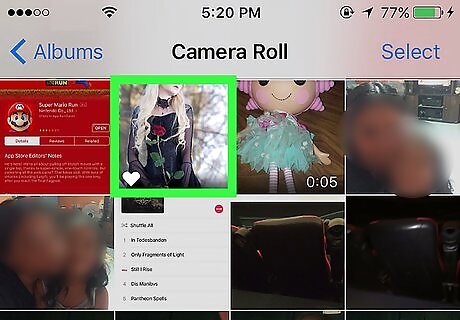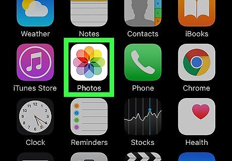 Open Photos. It’s the white icon with a multicolored flower, typically located on your home screen.