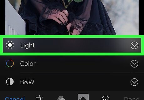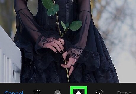 Select a picture to edit. Browse your albums until you find the photo you want to edit. To select the photo, tap it, then tap Select.