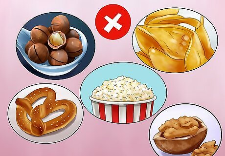 Do not give your cat macadamia nuts or salty snacks. Macadamia nuts contain an unknown toxin that is bad for cats. It can negatively affect your cat’s nervous system and digestive system. Other types of nuts like walnuts are also considered toxic for cats. People foods high in salt like potato or corn chips are also a no-no for cats. Salty snacks like pretzels, chips, and popcorn can cause vomiting, diarrhea, and seizures in cats.