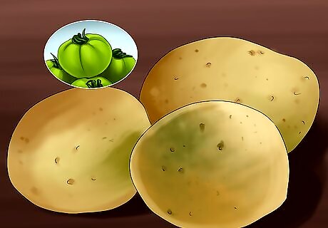 Do not feed your cat uncooked potatoes or tomatoes. Uncooked potatoes and tomatoes are from the nightshade family, which can be deadly for cats when eaten raw. Giving your cat uncooked potatoes and unripe tomatoes can cause gastrointestinal distress for your cat. When cooked, however, brown potatoes are safe for cats to eat. Green potatoes should not be given to cats, raw or cooked. All the green parts of a tomato plant, including the stem and leaves, are unsafe for cats to eat. Red ripe tomatoes are fine, but avoid green unripe ones.