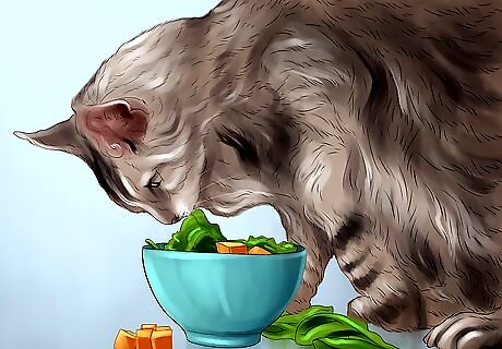 Give your cat spinach and pumpkin as a healthy treat. Spinach is full of vitamins and minerals, making it a healthy treat for cats. Cooked pumpkin is low on calories and high on nutrients. It’s a good option for a special treat for your cat, whether canned or fresh. If your cat is at risk of bladder stones, do not give them spinach.