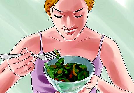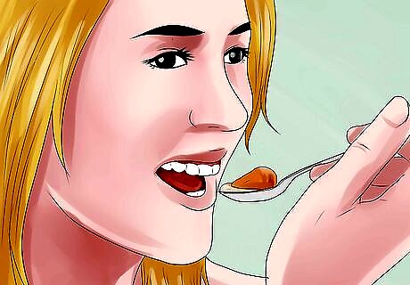 Slow down. Enjoy and be thankful for each bite, truly savoring the wonderful tastes. The slower you eat, the less you'll intake before your stomach reaches your brain and says, "Woah! Stop. I'm full!" It usually takes about 20 minutes for your stomach to start sending CCK signals to your brain -- the "I'm full" hormone. So instead of gorging yourself before you realize you don't want any more, take it easy. You have the whole afternoon, after all! A simple way to do this is to put your fork down between bites. Chewing your food a little more than you normally would (no need for counting and ruining Thanksgiving with math) and losing the fork are two concrete ways to curb your chowing speed.