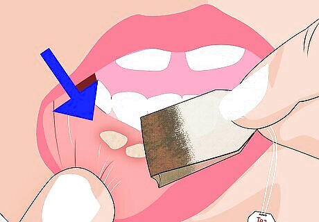 Place wet tea bags over the area. You can also try placing wet tea bags over the canker sores to help them heal. You may use herbal tea bags by steeping them in water and then letting them cool. Then, place them over the canker sore or hold them against the canker sore with your tongue.