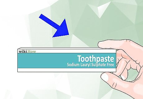 Use toothpaste that does not contain sodium lauryl sulfate. Sodium lauryl sulfate (SLS) can be found in some commercial toothpastes and mouthwashes. SLS is often used as a cheap filler to help toothpaste thicken and foam up. But this additive has been shown to increase the likelihood of developing canker sores in your mouth. Read the labels on toothpastes and mouthwashes to make sure they are free of SLS before you use them or search online for brands that specifically do not contain SLS.