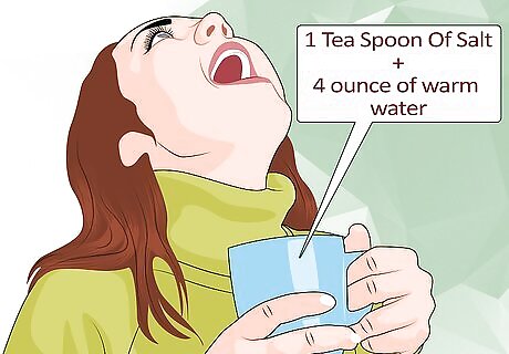 Gargle salt water or a baking soda rinse. Most canker sores will go away on their own, but if you would like to speed up the healing process you can try gargling with salt water or a baking soda rinse. Add one tablespoon of sea salt or baking soda to four ounces of warm water. Gargle with it twice a day to try to clean out and heal the canker sore. Do not swallow the mouth rinse, as this can lead to illness. Gargle by swishing it around in your mouth for 10 – 15 seconds and then spit it out.