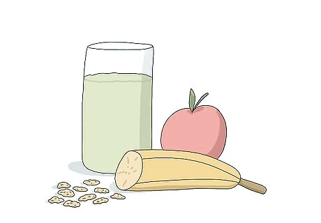 Drink plenty of water to stay well-hydrated. Dehydration can trigger a migraine attack, so make sure you're drinking water continuously throughout the day and into the evening. Keep in mind that if you start feeling thirsty, you're already dehydrated. To get a general idea of how much water you should be drinking every day, multiply your weight by 0.5. The result is the number of ounces of water you should be drinking. For example, if you weigh 260 pounds, you should drink 130 ounces of water every day. This is only a rough estimate. If you drink dehydrating beverages, such as coffee or alcohol, you'll need more water.
