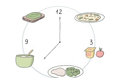 Eat small meals frequently. Generally, you shouldn't go more than 4 hours without eating something. However, if you're dieting and trying to avoid migraines, it may be necessary to eat smaller meals 4 or 5 times a day. This will keep your blood sugar from dropping too low, which can trigger a migraine. To stay full longer, choose something with carbs and protein as well as good fats. Fresh fish, such as salmon or tuna, along with whole-grain pasta and vegetables is a healthy option. Avocado or nut butter on toasted whole-grain bread can also help you to stay full for longer and prevent hypoglycemic headaches. Limit processed foods, including canned soups and frozen dinners that include monosodium glutamate (MSG), which can trigger migraines.