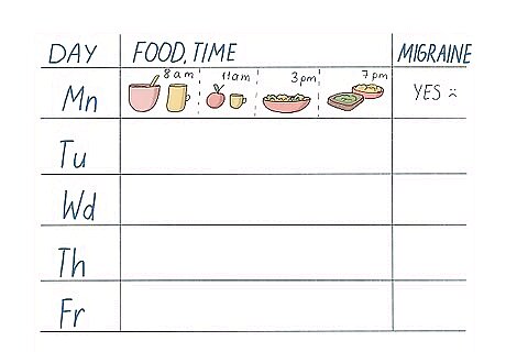 Keep a food journal to identify your personal triggers. Some of the common migraine triggers may not trigger a migraine attack for you, while other foods and drinks may cause a migraine. Keeping a food diary helps you figure out what you ate before a migraine attack so you can determine what foods might have triggered the attack. Include the time that you ate, as well as each food and a rough estimate of the quantity. Remember to include any snacks you have throughout the day as well as beverages. There are also smartphone apps you can use to keep your food diary if that would be more convenient for you. If you see a food that you think might be a trigger for you, try eliminating it from your diet for 30 days and see if you notice any difference. Only do this with one food at a time to isolate the results. Otherwise, you won't be able to determine which food was the culprit.Tip: Some foods trigger a migraine attack within an hour of eating them, while others may take up to 24 hours. Foods that are slower to trigger can be more difficult to detect because you likely ate a lot of other foods in the meantime.