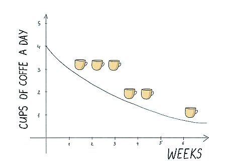 Decrease caffeine intake gradually. If you want to lose weight, eliminating sugary sodas and high-fat caffeinated beverages from your diet is a good thing. However, if you cut back on caffeine too quickly, you may trigger a migraine. Because caffeine is a drug, your body may become dependent on it if you drink caffeinated beverages frequently throughout the day. Lowering your caffeine intake gradually gives your body time to adjust to the decrease in the drug, so you'll get fewer headaches as a result. For example, if you drink 4 cups of coffee a day, you might move to 3, then drop to 2 after a couple of weeks. Try substituting chicory for coffee. It’s a blend of herbs and spices that has a rich flavor, but no caffeine. Tip: Since dairy can also be a migraine trigger, try switching to a dairy-free creamer in your tea and coffee.