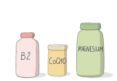Take dietary supplements to help prevent migraines. Some vitamin and mineral supplements have been tested and are considered potentially helpful in treating and preventing migraines. Not all of these supplements have the same effects on everyone, and some have side effects that you might find intolerable. Vitamin B2, or riboflavin, may prevent migraine attacks in adults. However, it doesn't have this effect on children. The recommended dose is 400 mg a day. Side effects are typically mild and may include diarrhea or frequent urination. Coenzyme Q10, or CoQ10, is an antioxidant that might prevent migraines, and side effects are rare. Take 100 mg three times a day. Magnesium may be helpful for migraine with aura or menstruation-related migraine and has no known side effects. Take 400-600 mg a day.Tip: When taking a supplement, don't expect immediate results. Typically, it takes 2 to 3 months of regular use to see any benefits.
