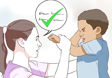 Be kind to the kids, even if they misbehave. One of the hardest parts of babysitting is dealing with a child who’s acting out. Fortunately, this won’t happen very often. Dealing with these kinds of problems can be really stressful, but try to stay calm because it’s super easy to hurt a child’s feelings. If you do have a kid misbehave, stay calm and gently remind them what they’re supposed to do. You might say, “Your mom said we can’t throw balls in the house, remember? Let’s play a different game.” You could also say, “It’s not okay to hit. Why don’t you say you’re sorry so we can go play some more?” If the behavior continues, you may have to contact their parent.