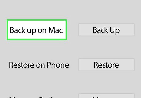 Click Backup on Mac. This prompts a new screen to appear on your iPhone or iPad.
