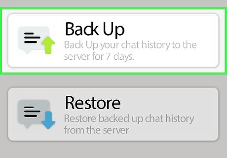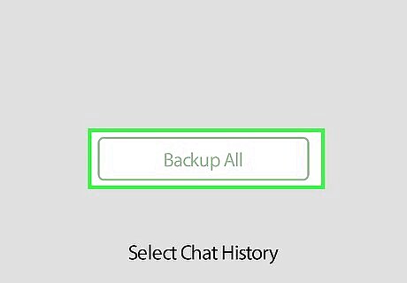 Tap Backup All on the iPhone or iPad. The backup will now begin. If you'd prefer to select specific chats instead, tap Select Chat History, tap the chats you want to back up, then tap Backup.