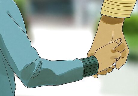 Stay physically close to your child. Travel with your child out of the house in a safe and controlled way by maintaining physical contact with them at all times. Have a hand-holding system where you always hold hands with your child when you are out of the house. Or use a hand-holding device, such as a light wrist strap, so your child is always within reach. Teaching your child to hold hands at an early age can make it a long lasting habit. This will make going out in public with your child easier and safer for both of you.